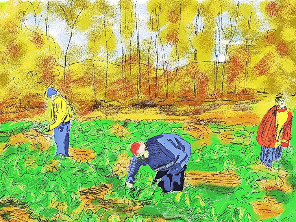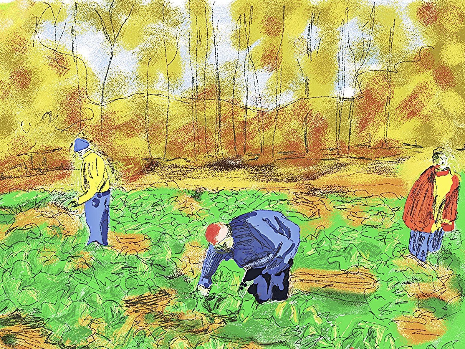 Collards are a mainstay in eastern NC. I made this painting of one of the community members harvesting collards .