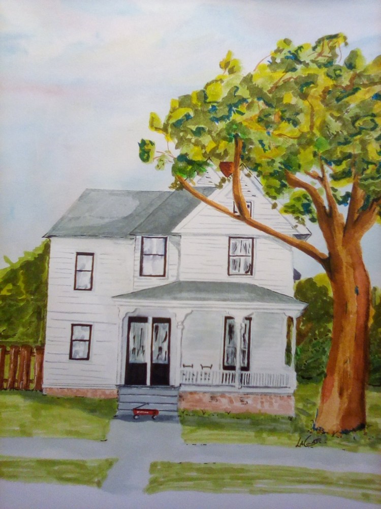 Recently my wife, Anna, discovered a photo in some old pictures. I have taken the photo and developed this painting. Turns out the home is the home of William Cannady and his bride Clyde Beatrice Cannady, Anna’s grandparents.